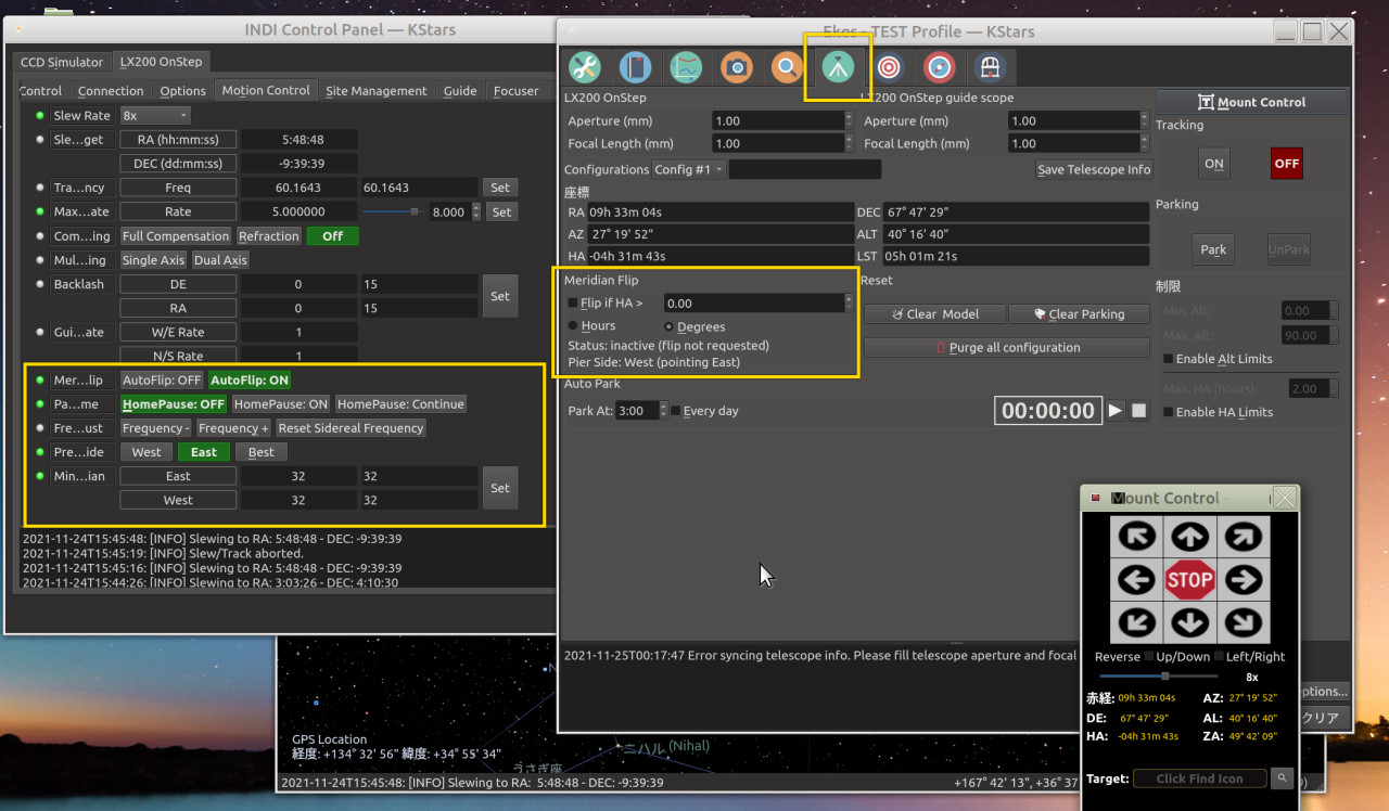 INDIだとMeridianFlipNowの様な機能も見当たらないんです。